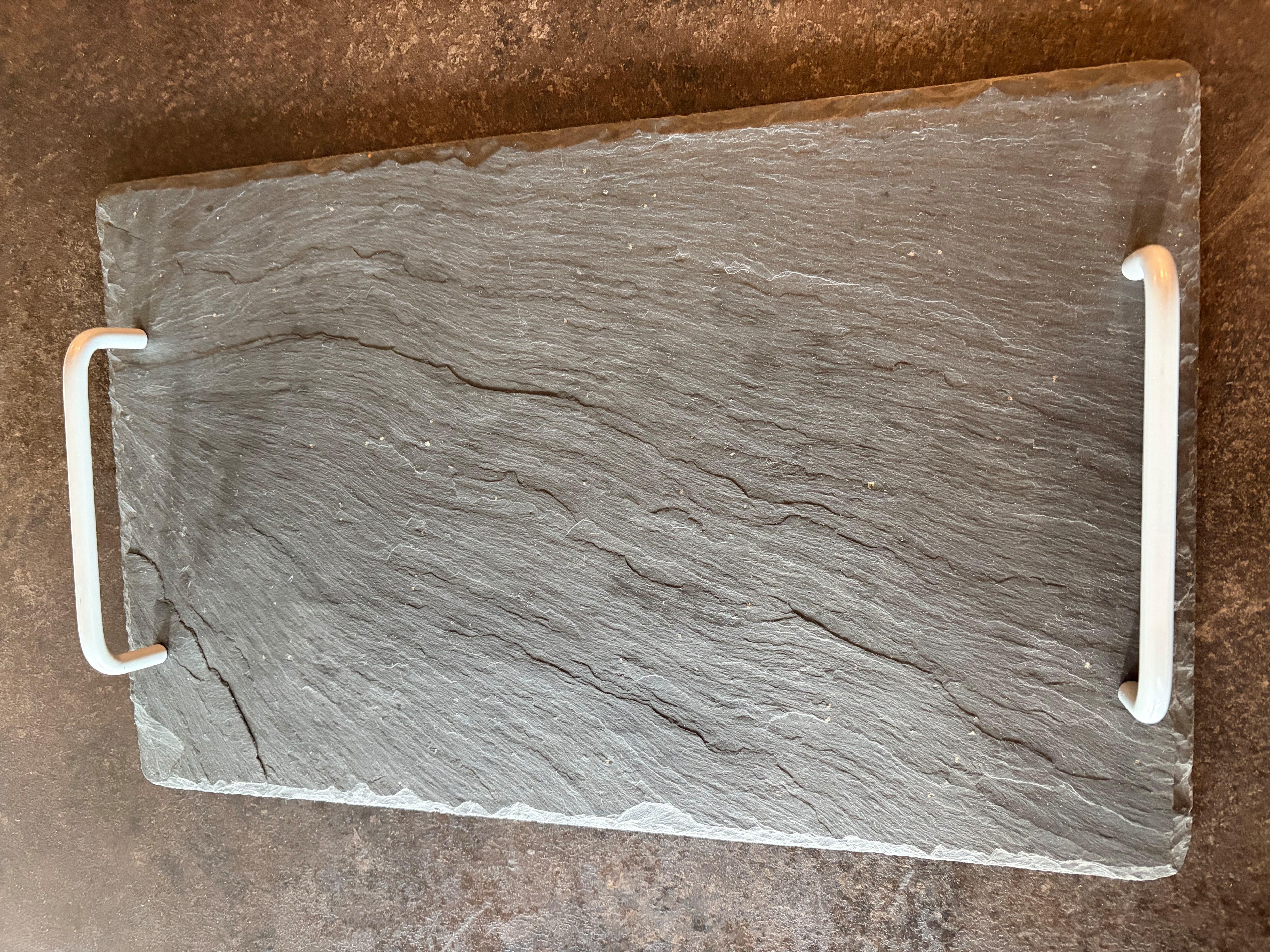 このスレートストーン サービングボードは、ナチュラルで洗練されたデザインが魅力のアイテムです。ハンドル付きの使い勝手の良い形状が、料理やスナックをスタイリッシュにディスプレイするのに最適です。スレート素材の自然な風合いが、食卓に特別な雰囲気を演出します。